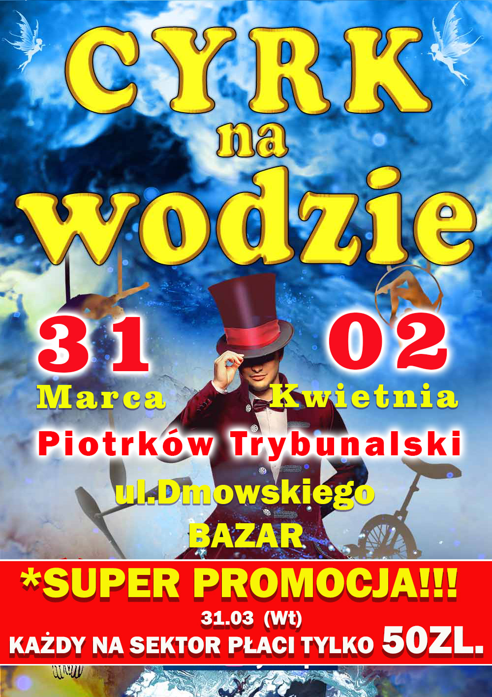 Cyrk na wodzie – Imperial Show ✨ Magia, która zapiera dech w piersiach! ✨ Otwórz drzwi do świata magii, gdzie spektakularne widowiska, zapierające dech wyczyny oraz feeria świateł i wody tworzą prawdziwą bajkę! Imperial Show to nie tylko cyrkowe przedstawienie, ale wielkie widowisko na światowym poziomie, które pobudza wyobraźnię i dostarcza niezapomnianych emocji. 💦 Tańczące fontanny, lśniące w reflektorach – gra wody i światła, która hipnotyzuje od pierwszych sekund. 🎭 Olśniewające kostiumy pełne blasku i fantazji – każdy występ artystów to prawdziwe dzieło sztuki. 🎶 Wciągająca muzyka, efekty dźwiękowe i niesamowite dekoracje – poczujesz się jak bohater niezwykłej historii! Adrenalina, napięcie i zachwyt! 🤡 Niezapomniany klaun – błyskotliwa komedia, która rozbawi każdego! Zabawne gagi, nieoczekiwane zwroty akcji i mnóstwo śmiechu! 🐻 Urocze bajkowe postacie – pełne magii i ciepła, staną się ulubieńcami najmłodszych i dostarczą im niezapomnianych emocji. 🔥 Fireshow – ogień, taniec i muzyka łączą się w hipnotyzujące widowisko, od którego nie można oderwać wzroku! Imperial Show – wydarzenie, którego nie możesz przegapić! 💫 Magia spektakularnych wyczynów, mistrzowski poziom artystów i atmosfera absolutnego zachwytu sprawią, że ten wieczór będzie niezapomniany! Przyjdź i zanurz się w świecie podziwu, zdumienia i prawdziwej radości! ✨ Imperial Show to nie tylko spektakl. To magia, która zostanie z Tobą na zawsze! ✨